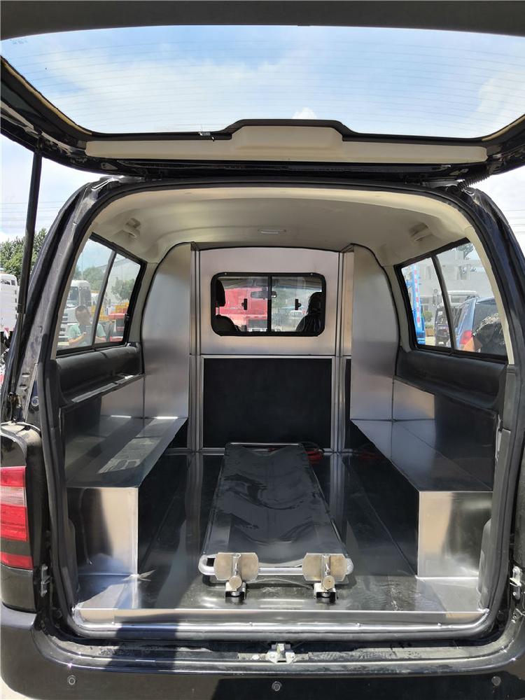 (3)可選配不銹鋼常溫、冷藏運尸棺或仿紅木運尸棺,一車多用。